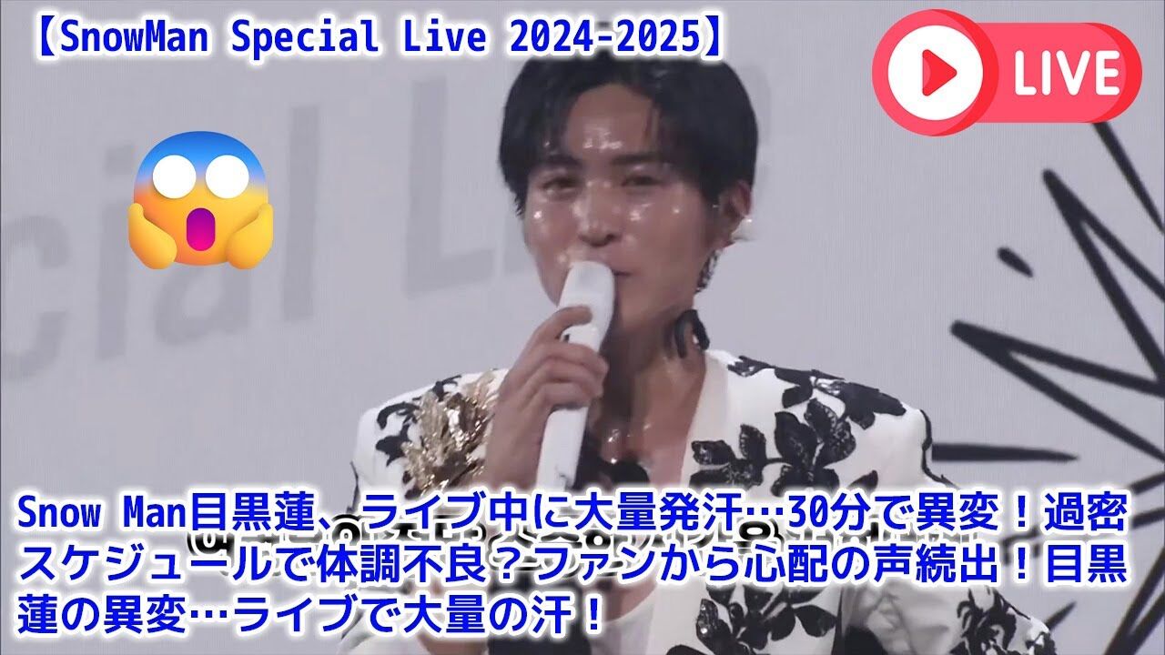 | 目黒蓮、ライブ序盤で尋常ではない“大量の汗”「体調不良が続いている?」ファンが感じた異変 …記録した。ただ、その中で人気メンバーの目黒蓮(27)に異変があり、ファンの間で心配の声があがっている。 目黒蓮、ライブ序盤で大量の汗「同ライブで目黒… (出典:) |
